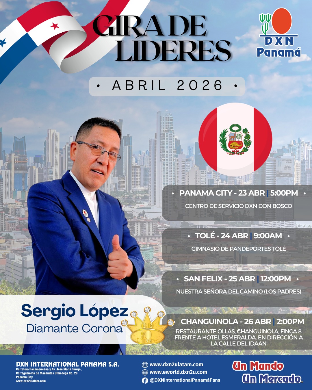 Agradezco mucho a Dios por haber puesto a DXN en nuestras vidas, a mi familia, a mis hijos que son mi motivación, y a toda la organización de mi esposa y mía que se ha ido formando en estos años y que ya estamos llegando cerca a los 2, 000,000 de PVs mensuales, líderes enfocados, perseverantes, guerreros, comprometidos que gracias a sus metas y determinación están logrando sus sueños, tenemos cerca de 1,200 diamantes dentro de la organización de Perú y otros países. También agradezco a Datuk Lim Siow Jin por ser un visionario, que a pesar de las dificultades que paso logro sus sueños y pudo cambiar la vida de miles de personas en el Mundo.